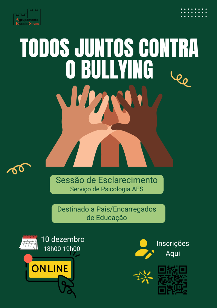 O Serviço de Psicologia do Agrupamento de Escolas de Silves, vem convidar todos os Pais e Encarregados de Educação a participarem numa Sessão de Esclarecimento sobre a temática do Bullying.A sessão a realizar-se no dia 10 de dezembro às 18h00, em formato online, e tem como objetivo geral informar, sensibilizar e refletir em conjunto sobre […]