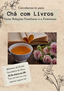 No próximo dia 27 de março, às 19h, irá realizar-se, na Biblioteca Escolar da Escola Secundária de Silves, um evento organizado pelo Centro Qualifica do AES: “Chá com Livros”. Junte-se a nós para uma conversa descontraída sobre livros e leituras marcantes a partir do tema relações familiares e o feminismo.