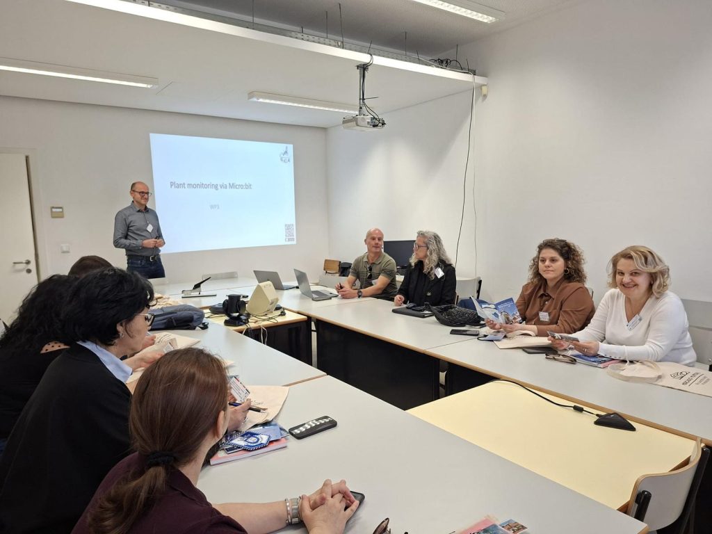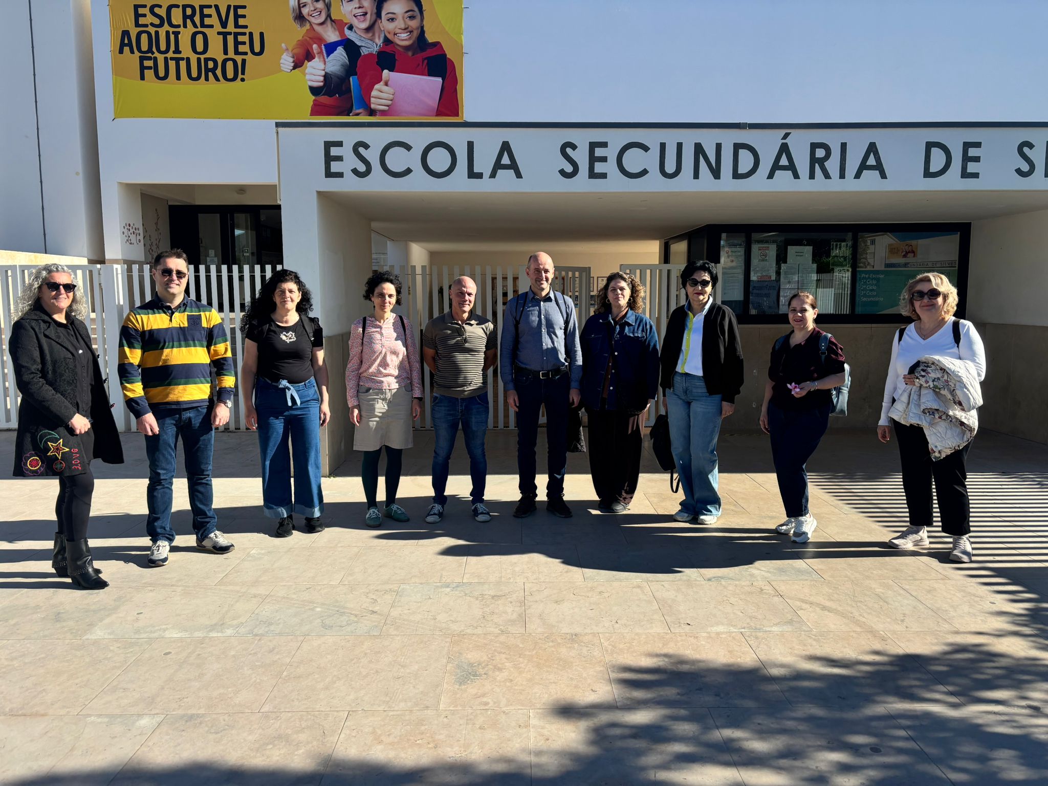 Entre os dias 15 e 17 de abril de 2026, um grupo de 12 professores, oriundos de três países europeus, Portugal, Grécia e Roménia, participaram na quarta Reunião do Projeto Transnacional, organizado no Agrupamento de Escolas de Silves, organizado pela Escola Secundária de Silves – Portugal, no âmbito do projeto Erasmus+, intitulado “EMPOWERING STUDENTS IN GREEN SENSING THROUGH AI AND VISUAL ARTS” (eGAIA). Esta parceria, coordenada por dois professores da Universidade de Craiova, contou com a participação da Escola Básica João de Deus – São Bartolomeu de Messines, da EB1/PE Cruz de Carvalho do Funchal, da Escola 6th Experimental Junior High School Alexandroupolis, Grécia e da Scoala Gimnaziala Mihai Eminescu, Craiova, Roménia. O projeto de dois anos tem como objetivo capacitar os alunos no domínio de ferramentas digitais envolvendo as STEAM com IA, de modo a se tornarem agentes ativos de mudança em relação às questões climáticas. Esta reunião serviu para fazer o balanço dos resultados dos trabalhos até então realizados e programar a mobilidade seguinte, que acontecerá em Alexandrópolis, Grécia, entre os dias de 5 a 9 de maio de 2026.